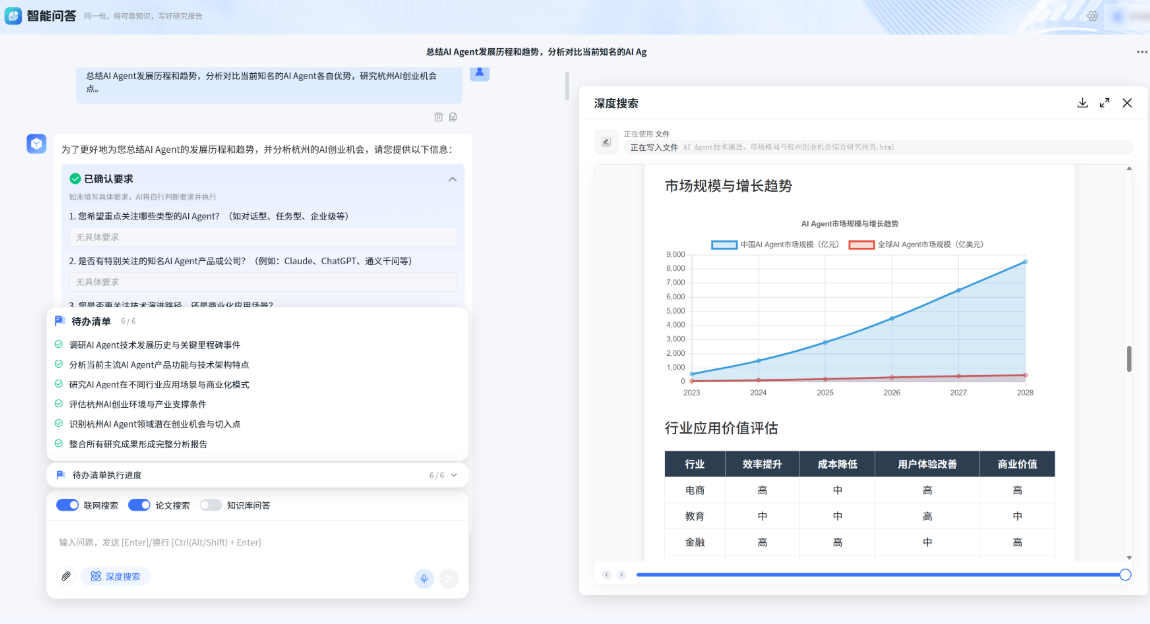 - 计划-搜索-推理-总结,复杂课题智能拆解