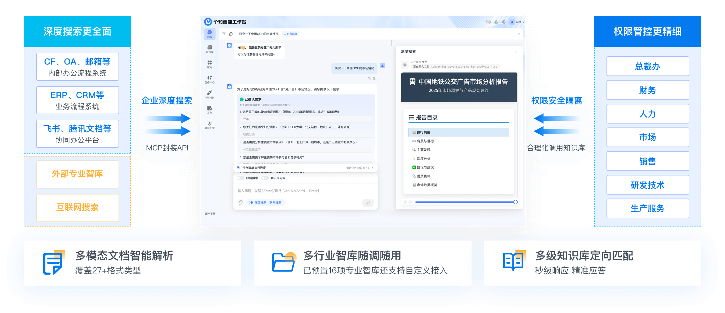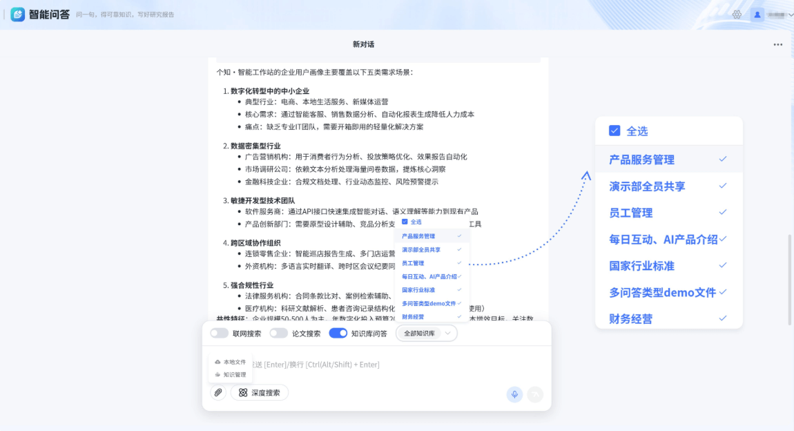 - 支持企业知识库联动搜索,让行研更贴合用户/企业视角